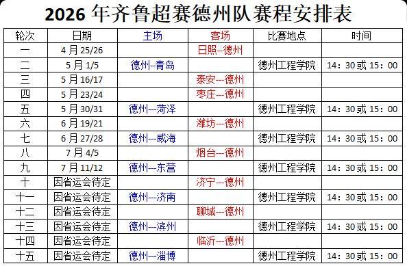 2026年齐鲁中超赛程已公布!德克萨斯队在第一场客场比赛中迎战阳光队
